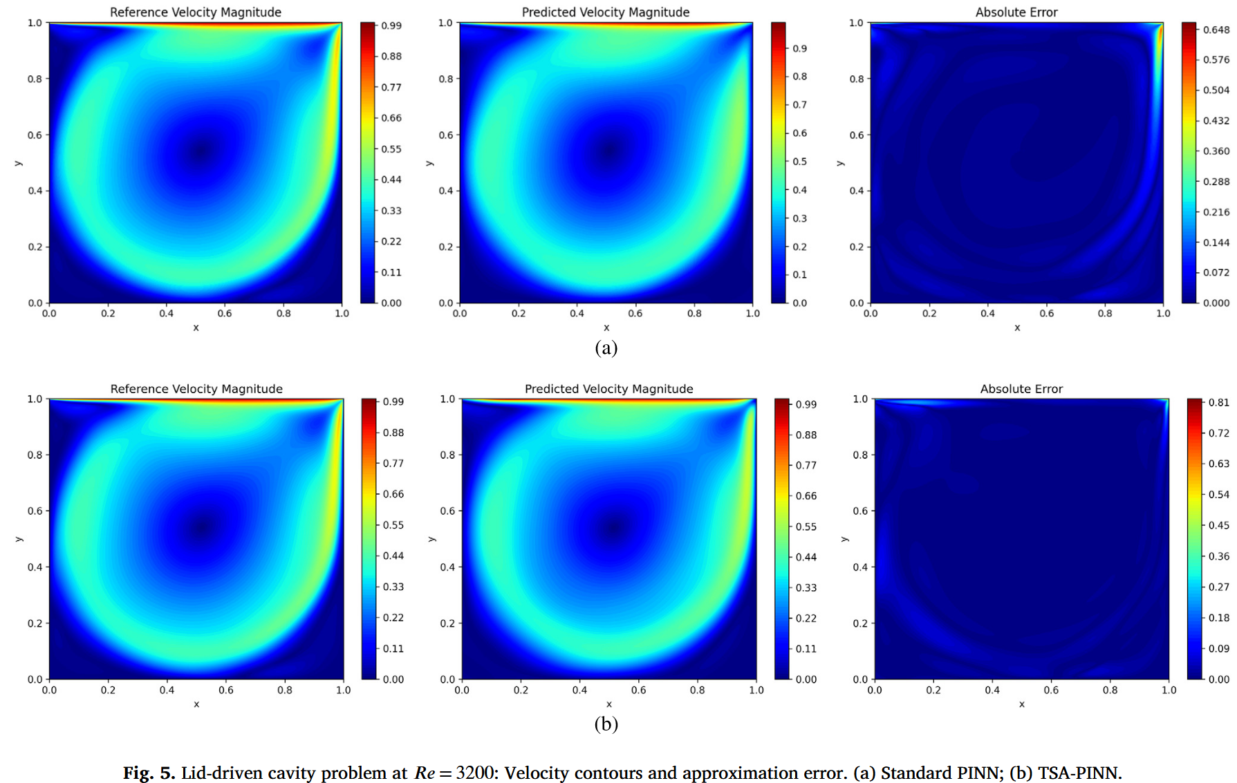 我们介绍 TSA-PINN,一种新型物理知情神经网络(PINN),利用可训练正弦激活(TSA)机制近似纳维-斯托克斯方程的解。通过结合具有可训练频率的神经元正弦激活功能和动态斜坡恢复机制,TSAPINN 实现了卓越的准确性和收敛性。其动态调节激活频率的能力使复杂流体行为的高效建模成为可能,从而缩短训练时间和计算成本。我们的测试超越了典型问题,还研究了较少被探索且更具挑战性的情景,这些通常对以往模型来说是困难。各种数值测试强调了 TSA-PINN 模型在五种不同情景中的有效性。这些包括在两个不同雷诺数下,盖子驱动腔内的稳态二维流动;一个以振荡流体行为为特征的圆柱尾流问题;以及两个时间相关的三维湍流情况。湍流情况下,重点关注详细的近壁现象,包括粘性亚层、缓冲层和对数定律区域——以及不同尺度涡流之间的复杂相互作用。数值和定量分析均表明,TSA-PINN 相较传统 PINN 模型有显著改进。这项研究推动了基于物理的机器学习,为科学计算和工程中动态系统建模树立了新标杆。